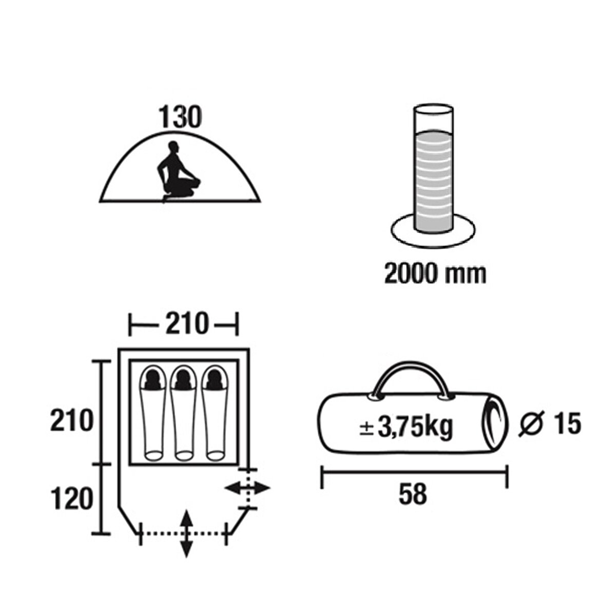 | Водостойкость тента | 2000 мм в.ст. |