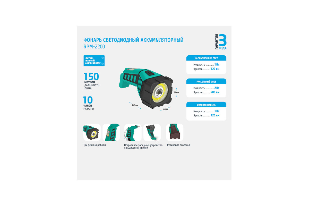 СохранитьФонарь аккумуляторный светодиодный фотон RPM-2200 (1W), 3 режима интересное: