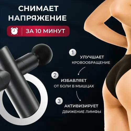 Перкуссионный массажер ударный вибрационный пистолет для тела от боли в мышцах / 30 скоростей и 6 насадок в комплекте интересное: