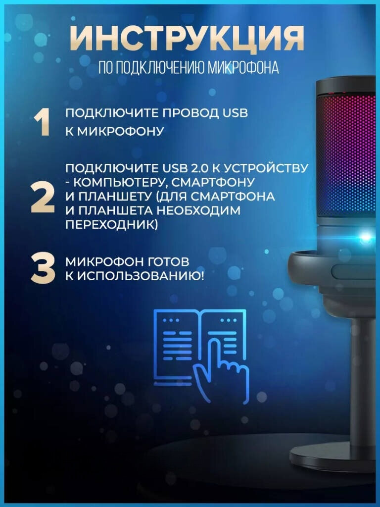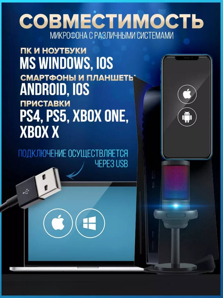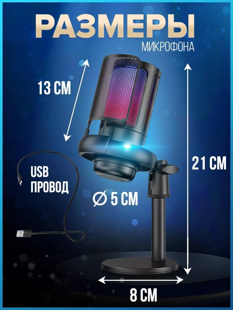 Микрофон игровой, студийный (для стриминга) Конденсаторный с RGB подсветкой USB TYPE-C от GadFamily_Shop интересное: