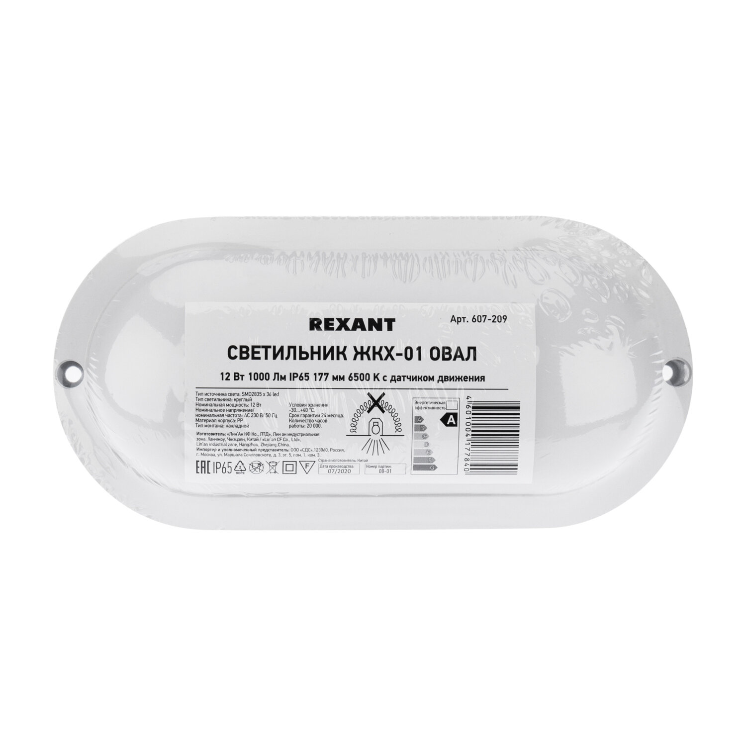 Светильник светодиодный Rexant 607-209 пылевлагозащищенный ЖКХ-01 овал 12 Вт 1000 Лм IP65 177 мм 6500 K с микроволновым датчиком движения