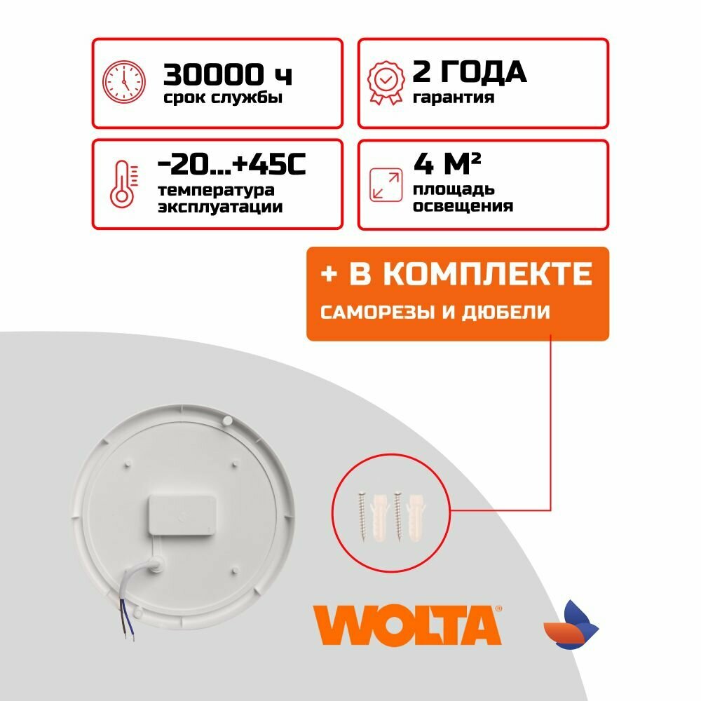 Светодиодный светильник WOLTA LCL04-12W-R01-4K 12Вт 4000K 960лм