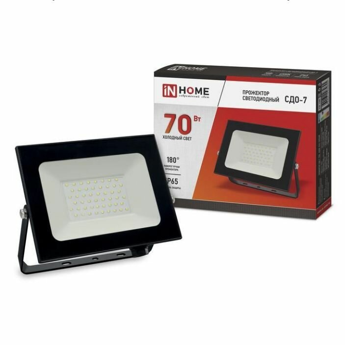 INhome Прожектор светодиодный IN HOME СДО-7, 50 Вт, 230 В, 6500 К, IP65, черный