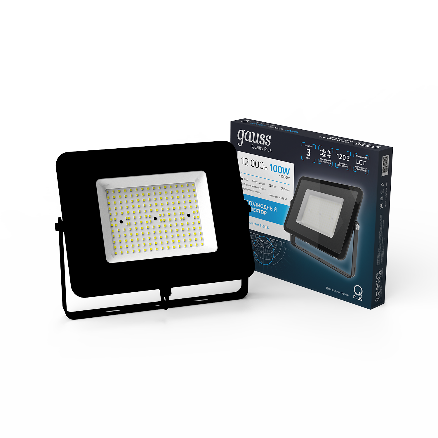 Прожектор GAUSS Qplus 100w 12000lm 6500k 175-265v ip65 черный led