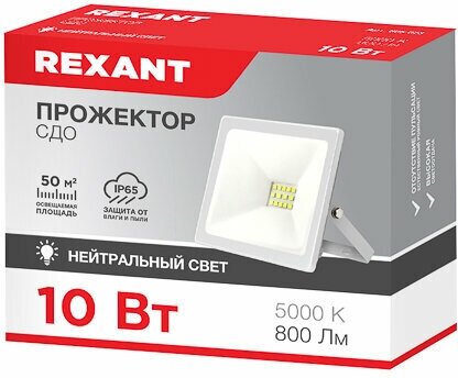 Прожектор Rexant СДО 50 Вт 4000 Лм 5000 K белый корпус 605-026 .