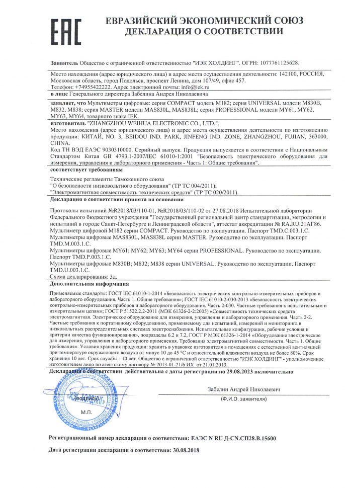 Мультиметр цифровой Universal M830B IEK TMD-2B-830