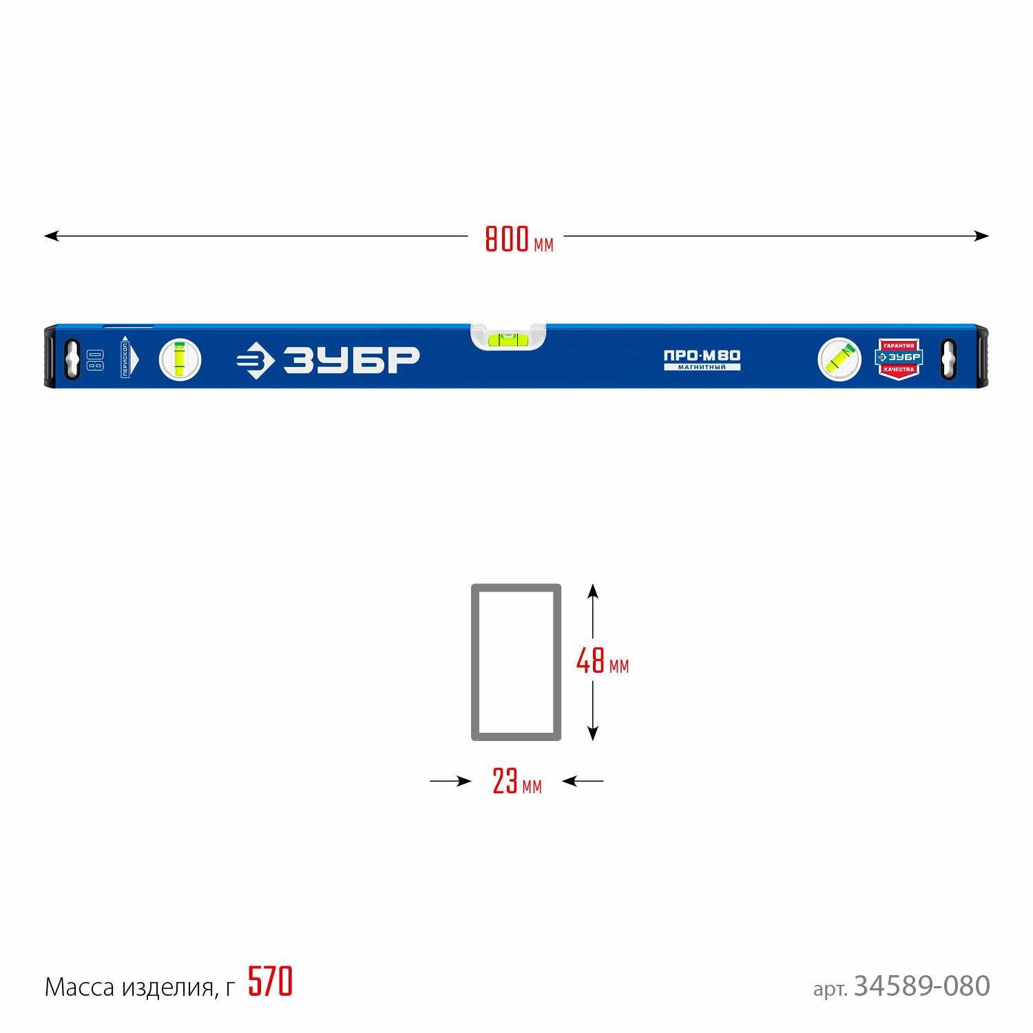 Усиленный магнитный уровень, ЗУБР ПРО-М, 800 мм, 34589-080_z01