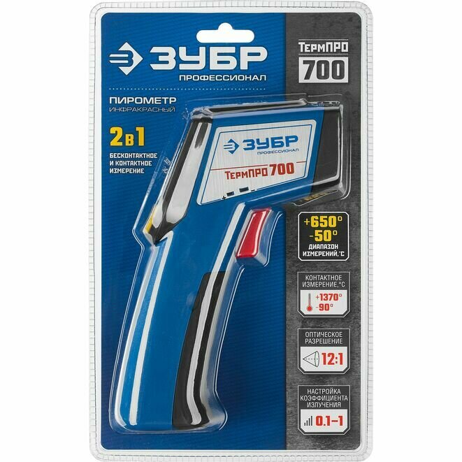 Пирометр инфракрасный, -50°С +650°С, ТермПро-700, ЗУБР Профессионал
