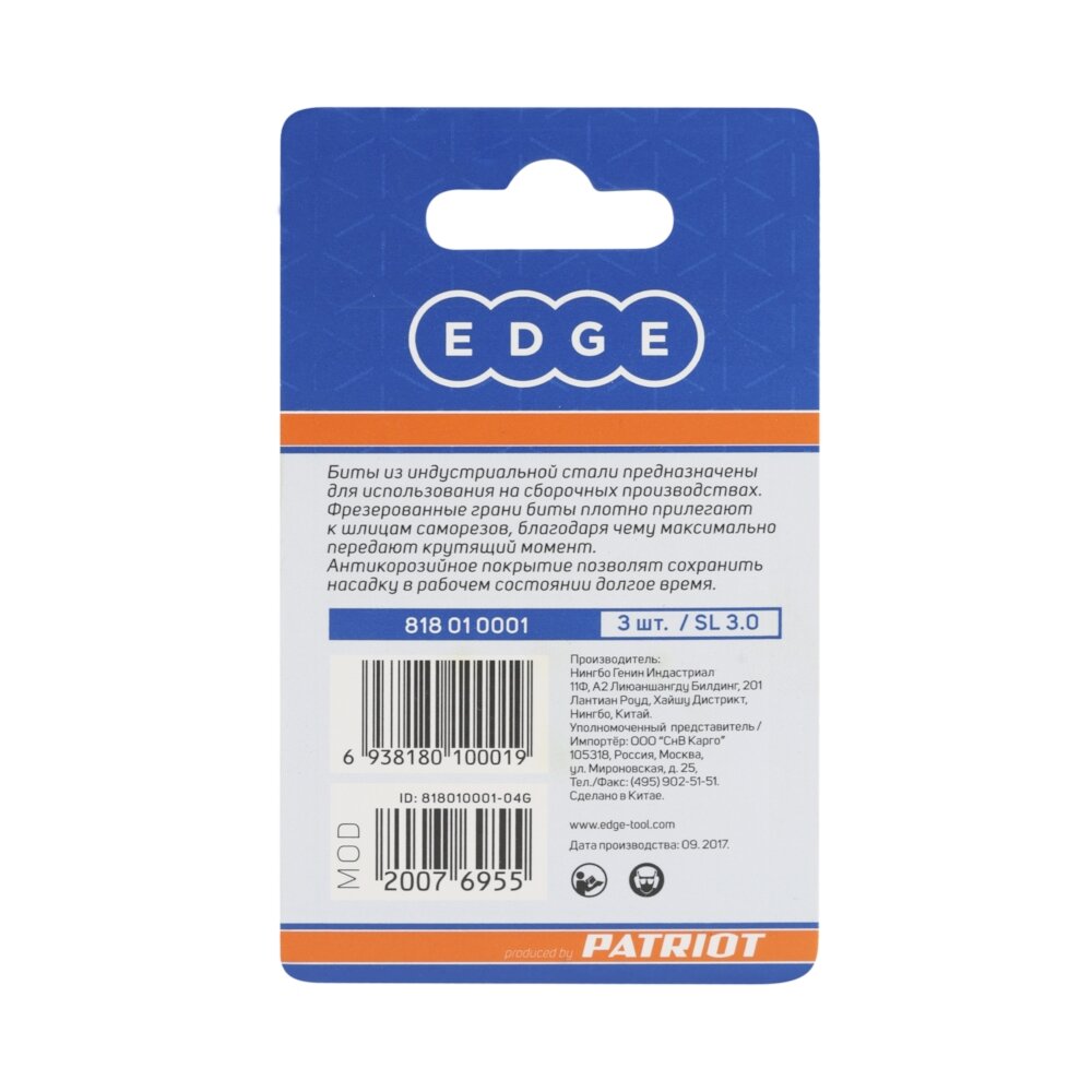EDGE by PATRIOT Бита SL 3.0мм длина 25 мм, 3шт в блистере 818010001