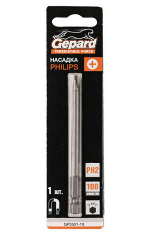 Насадка крестообразная PH2 100мм GEPARD (GP3501-10) (бита Phillips сталь S2 магнитная)
