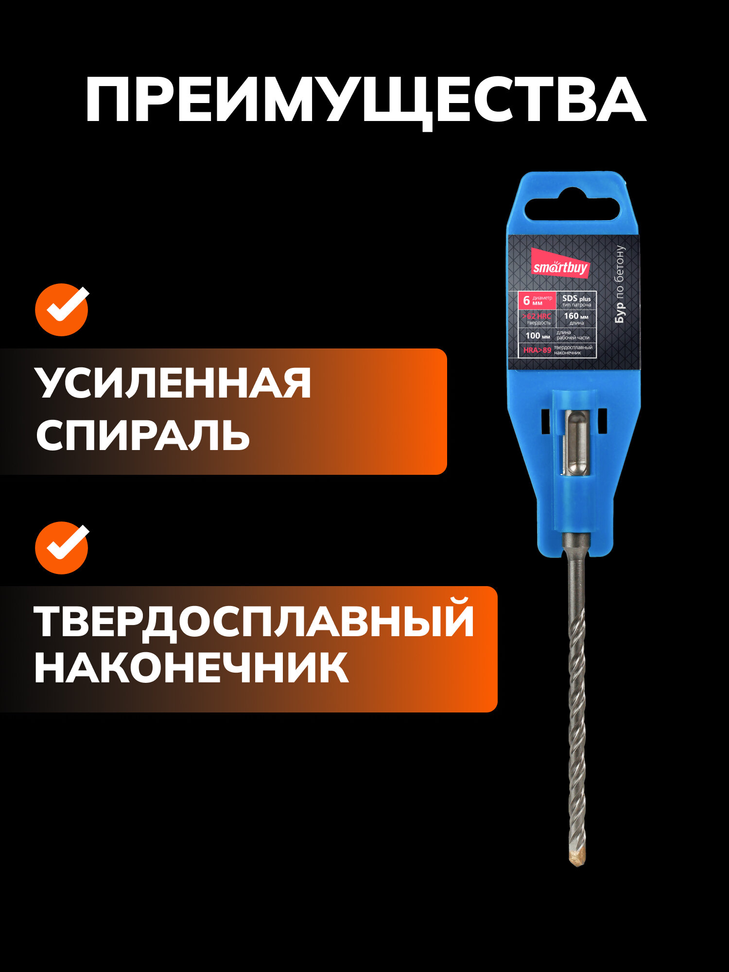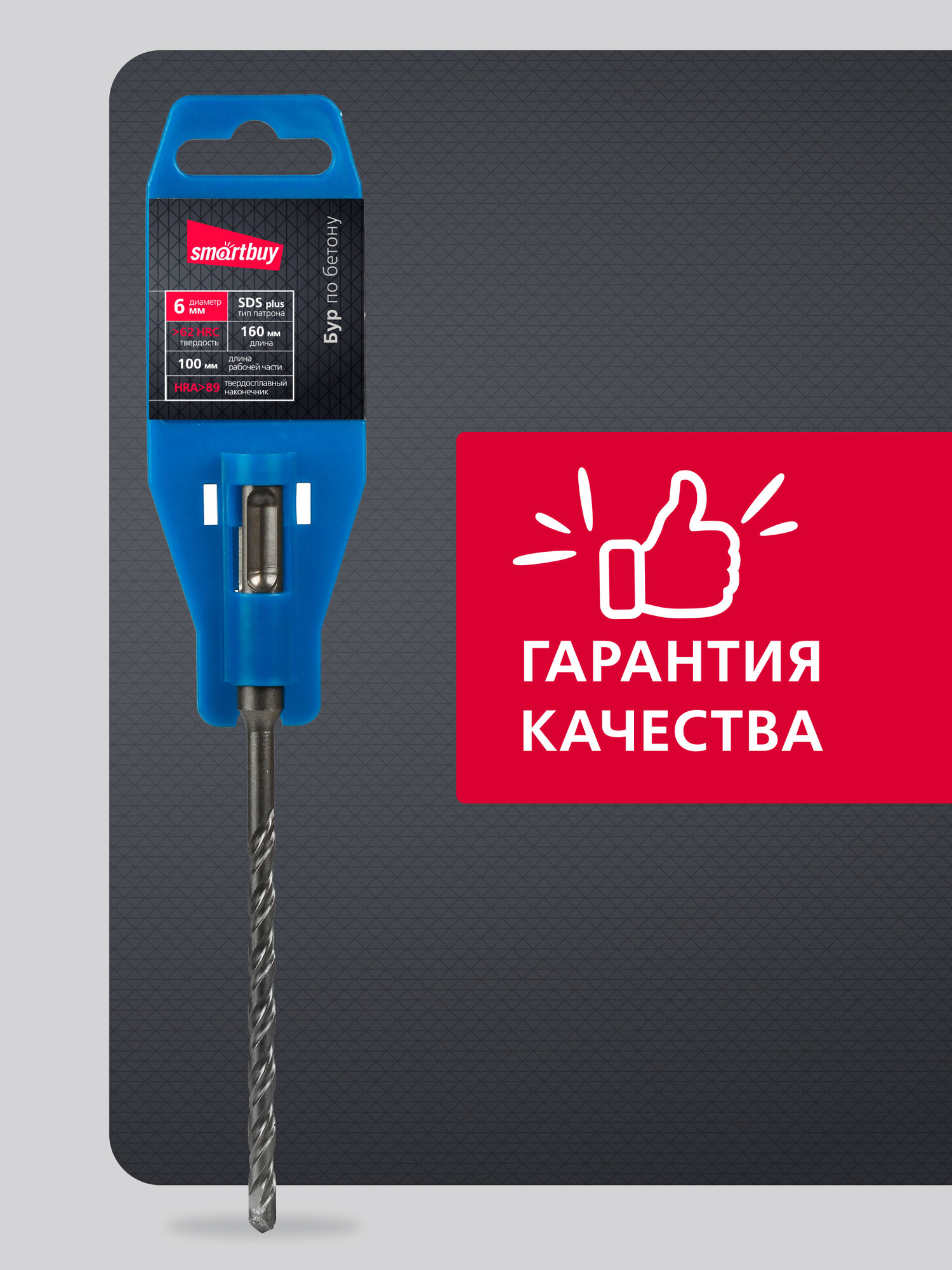 Бур по бетону SmartBuy 6х100х160, HRC>45, SDS-plus, HRA>89