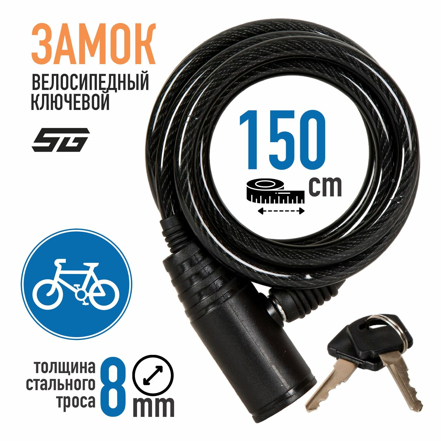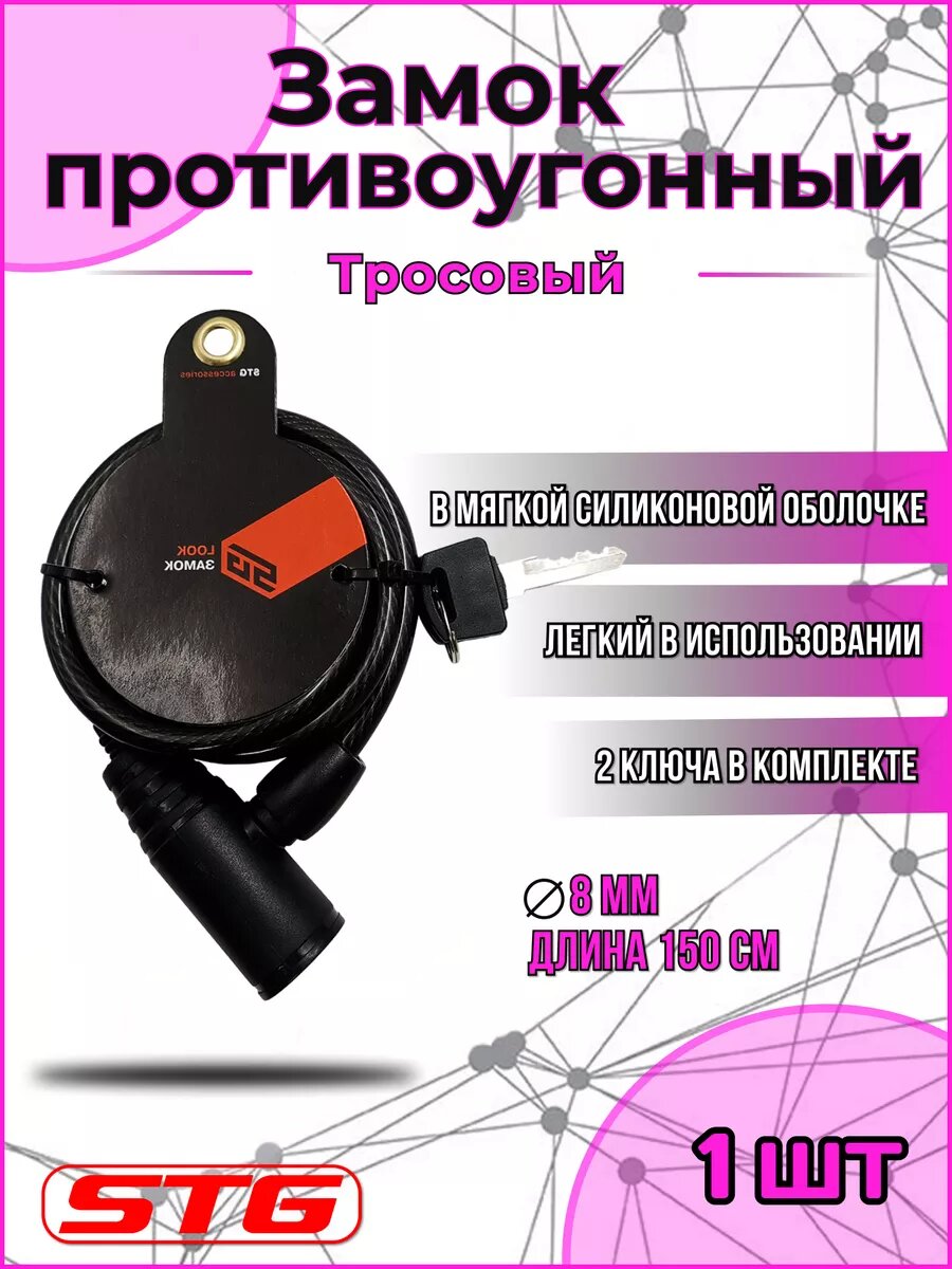 Замок велосипедный STG -трос стальной, диам.8х150сm, с ключом