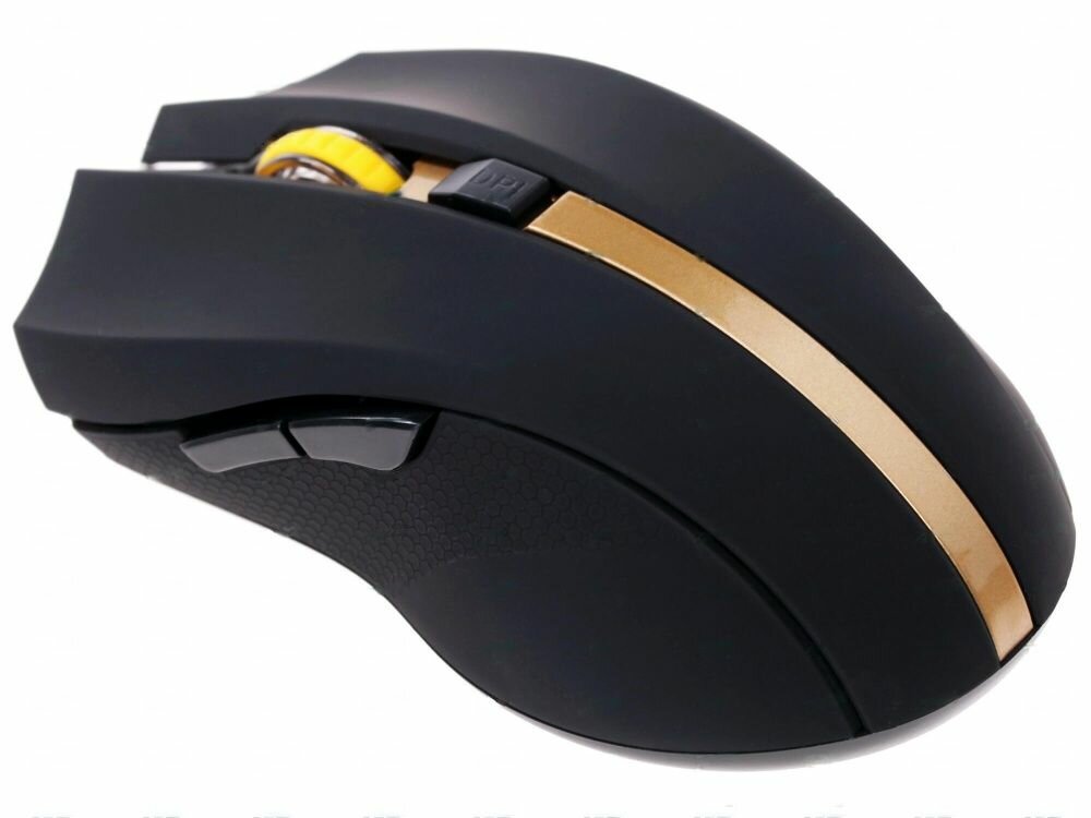 Мышь OKLICK 495MW черный/золотистый, оптическая (1600dpi), беспроводная, USB (6 кнопок)