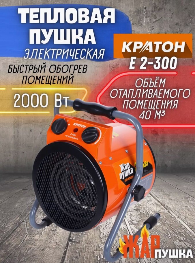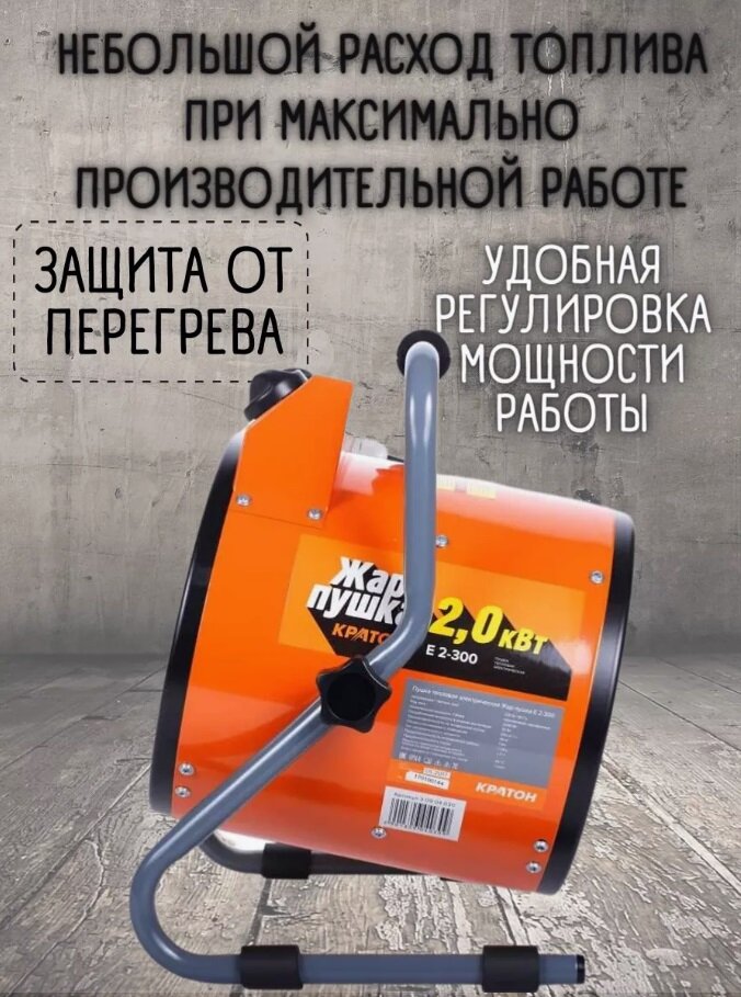 Ниже Вы можете прочитать отзывы на Пушка тепловая электрическая Кратон Жар-пушка Е 2-300, мощность 2 кВт, площадь отапливаемого помещения 20 кв.м., ознакомится с подробными характеристиками, посмотреть интересные обзоры и фотографии на Пушка тепловая электрическая Кратон Жар-пушка Е 2-300, мощность 2 кВт, площадь отапливаемого помещения 20 кв.м..