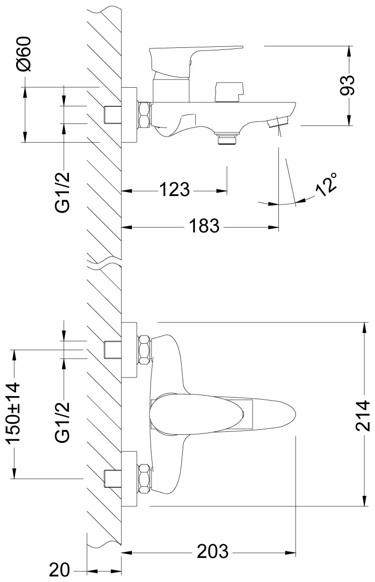 Смеситель для ванны Lemark Nero LM0214C, однорычажный, хром