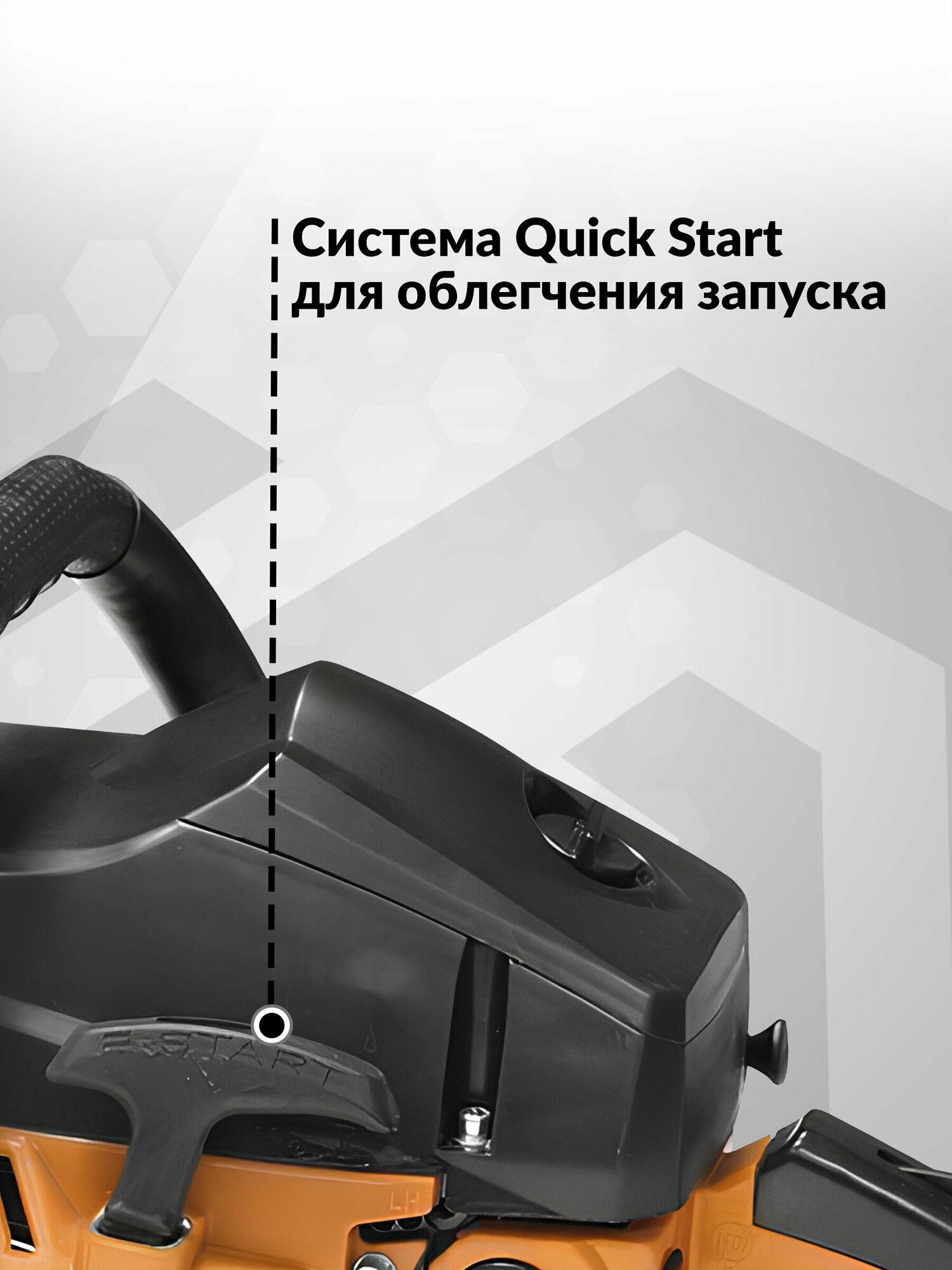 | Плюсы: | Достаточно мощная. Система QuickStart гасит удар по руке детонацией двигателя при запуске, как это часто встречается на бюджетных моделях. Длинная шина за те же деньги. |