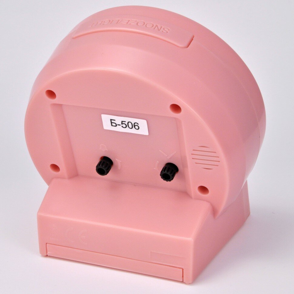 Детский будильник Тик-Так Б-506 розовый с музыкальным звонком, светодиодной подсветкой и бесшумным ходом