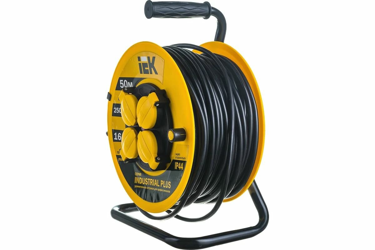 Удлинитель на катушке IEK Industrial Plus УК50, 4 розетки, с заземлением, 3 x 1,5 мм², IP44, 50 м