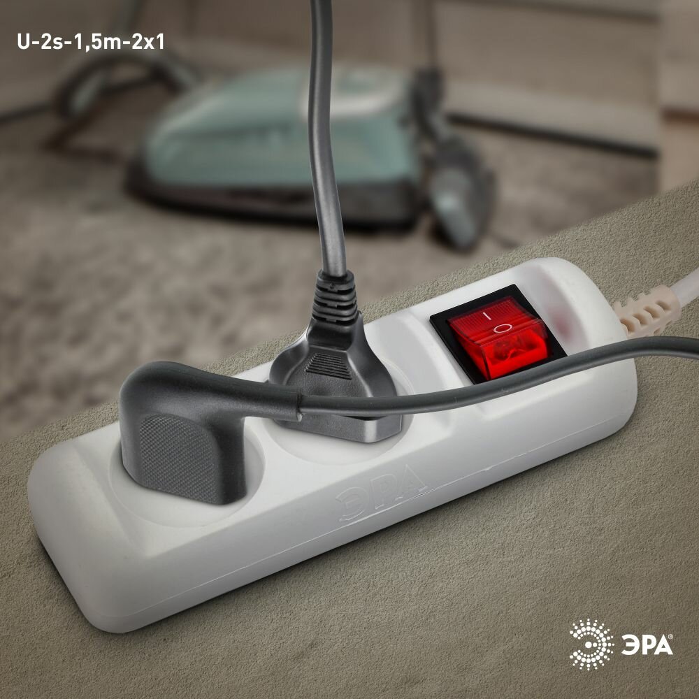 Удлинитель сетевой ЭРА U-2s-1,5m-2x1 без заземления, с выключателем, 2 розетки, 1,5м, 10А