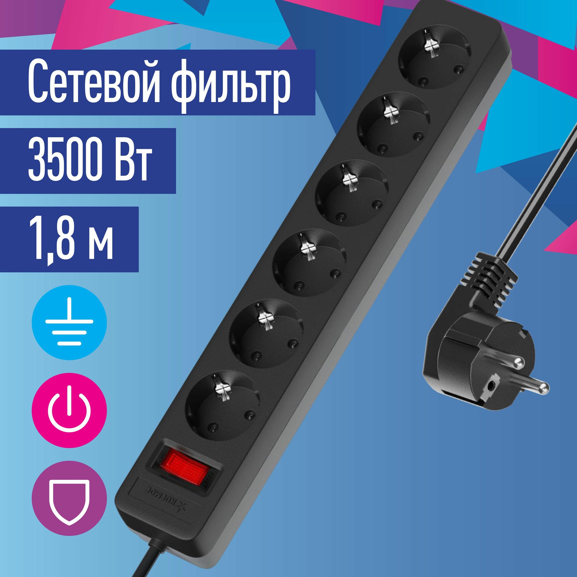 Сетевой фильтр Космос 6 розеток, 1,8 м, пвс 3х0,75мм2, чёрный