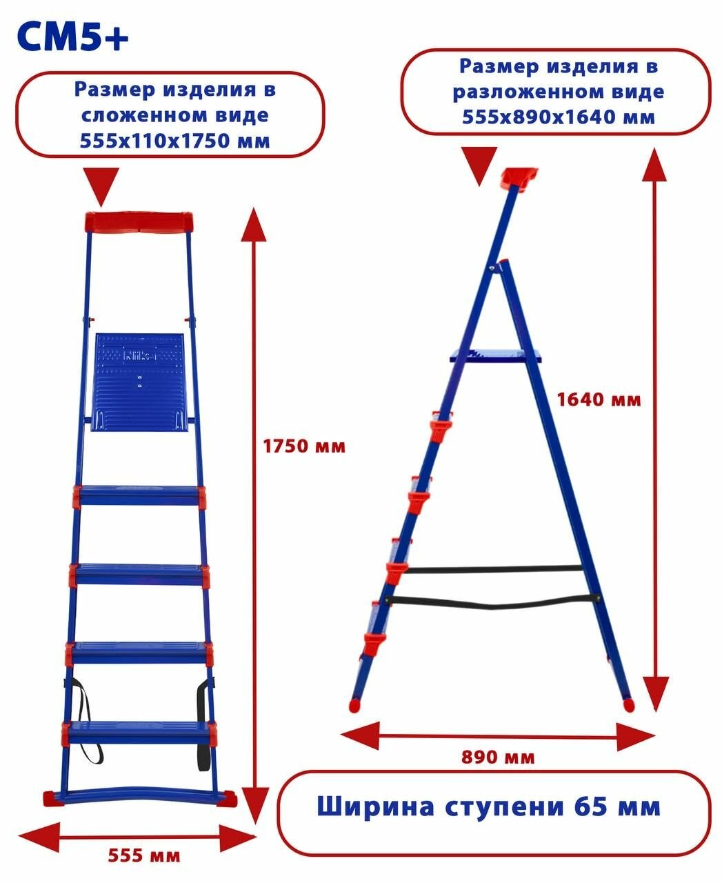 Стремянка 5 ступеней СМ5+ NIKA 555х890х1640мм