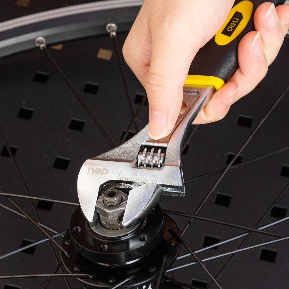 Ключ Deli Разводной 200мм, обрезиненная ручка, диапазон захвата 0-28мм