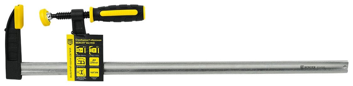 Струбцина F-образная Berger BG 1938, 80x500мм, зажим до 270кг