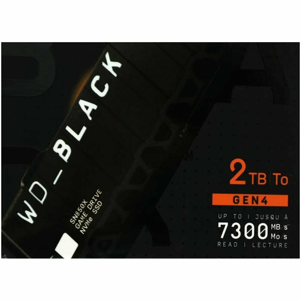 Твердотельный накопитель WD SSD Black SN850X, 2.0TB, M.2(22x80mm), NVMe, PCIe 4.0 x4, 3D TLC, R/W 7300/6600MB/s, IOPs 1 200 000/1 100 000, TBW 1200 (WDS200T2XHE)