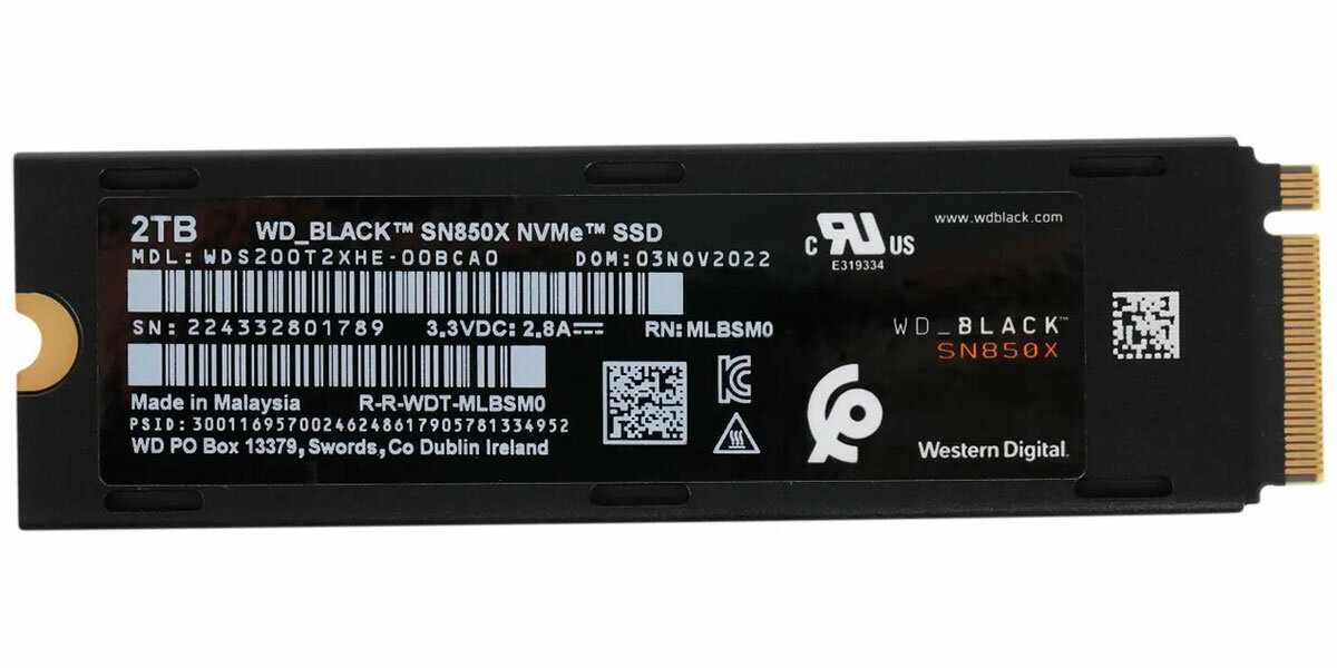 Купить Твердотельный накопитель Western Digital WD Black SN850X с радиатором 2 ТБ M.2 WDS200T2XHE. Подходит к PS5.