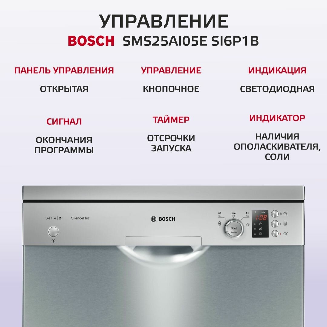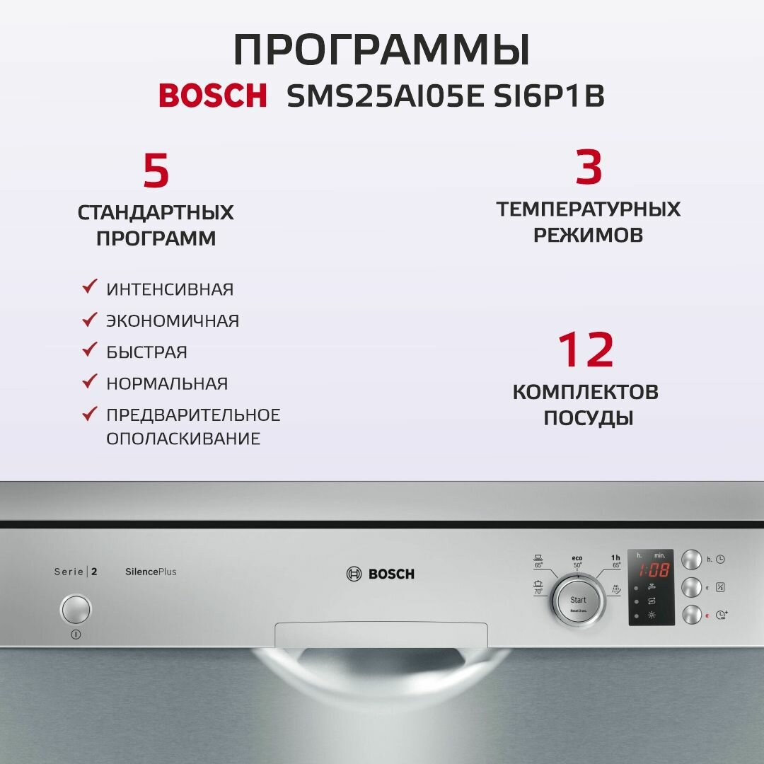 Посудомоечная машина Bosch SMS25AI05E серебристый интересное: