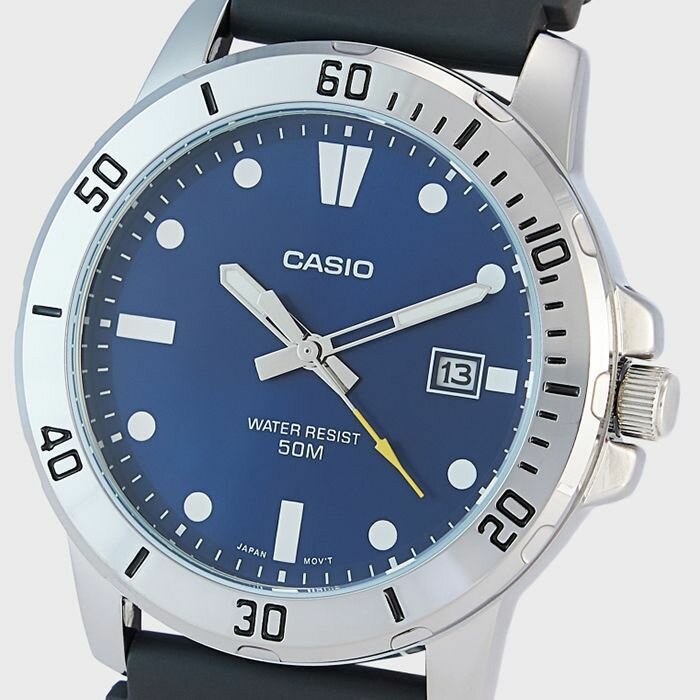 MTP-VD01D-7C Casio наручные часы кварцевые WR50 (5 атм) мужские серебряный, серый отображение числа подсветка стрелок минеральное стекло