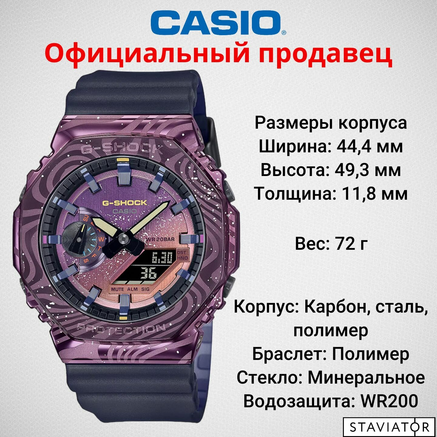 | Минусы: | По сравнению с моделями ниже по цене ga2100 кроме корпуса , циферблата и ремня , больше Новых фишек не подвезли ;(