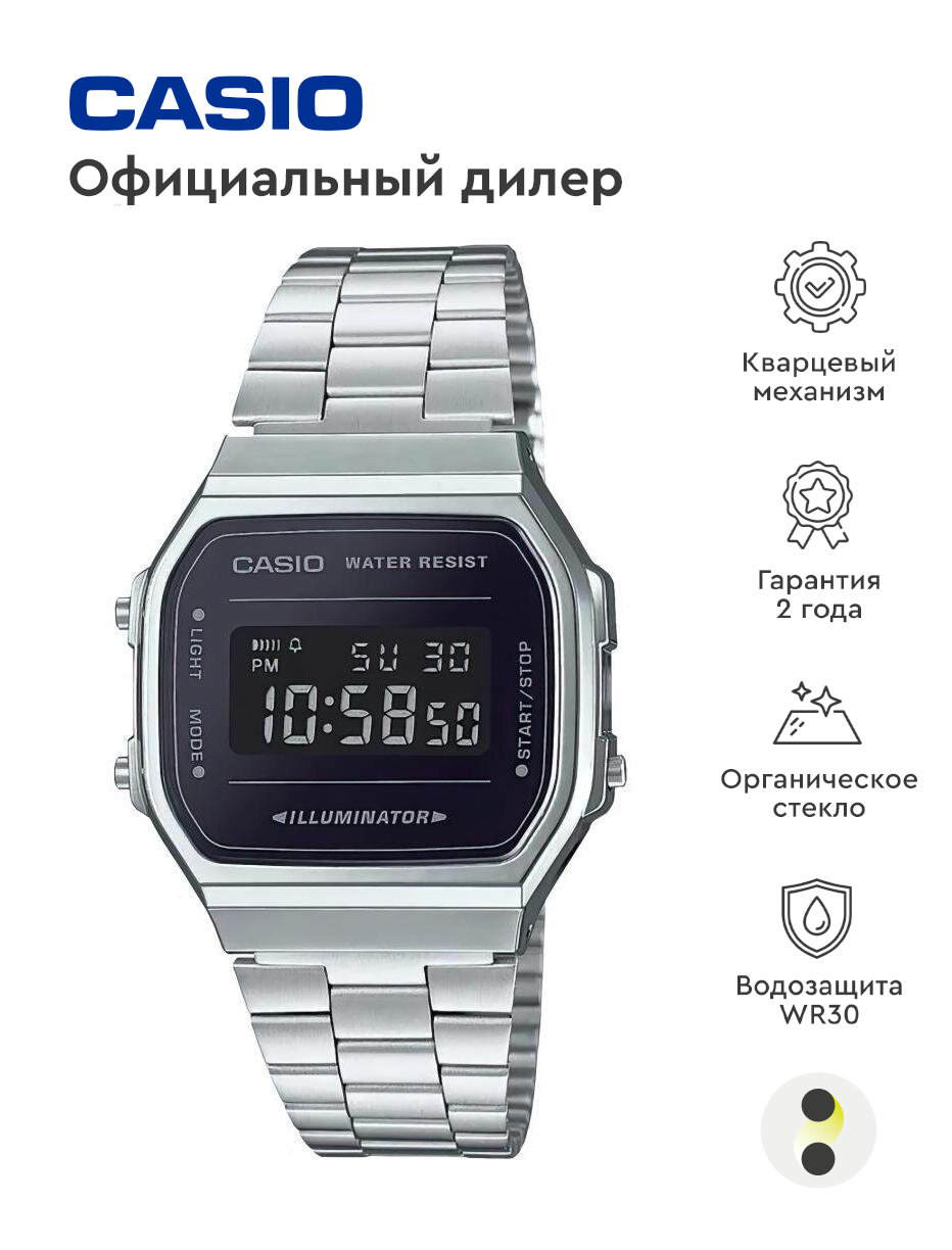 Наручные часы CASIO A-168WEM-1, серебряный, черный интересное: