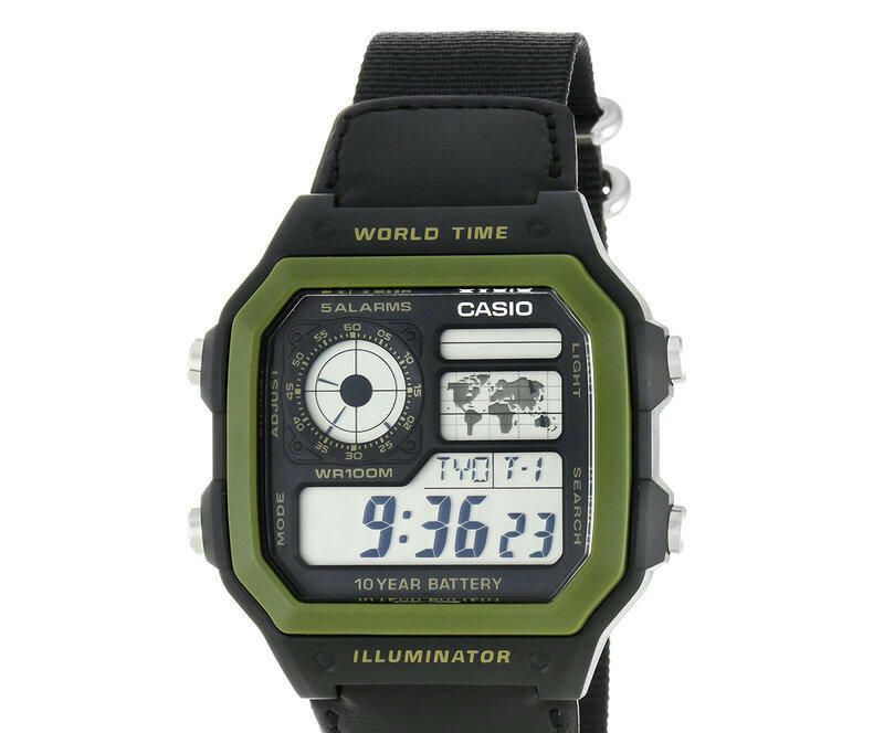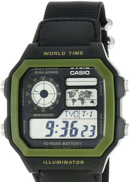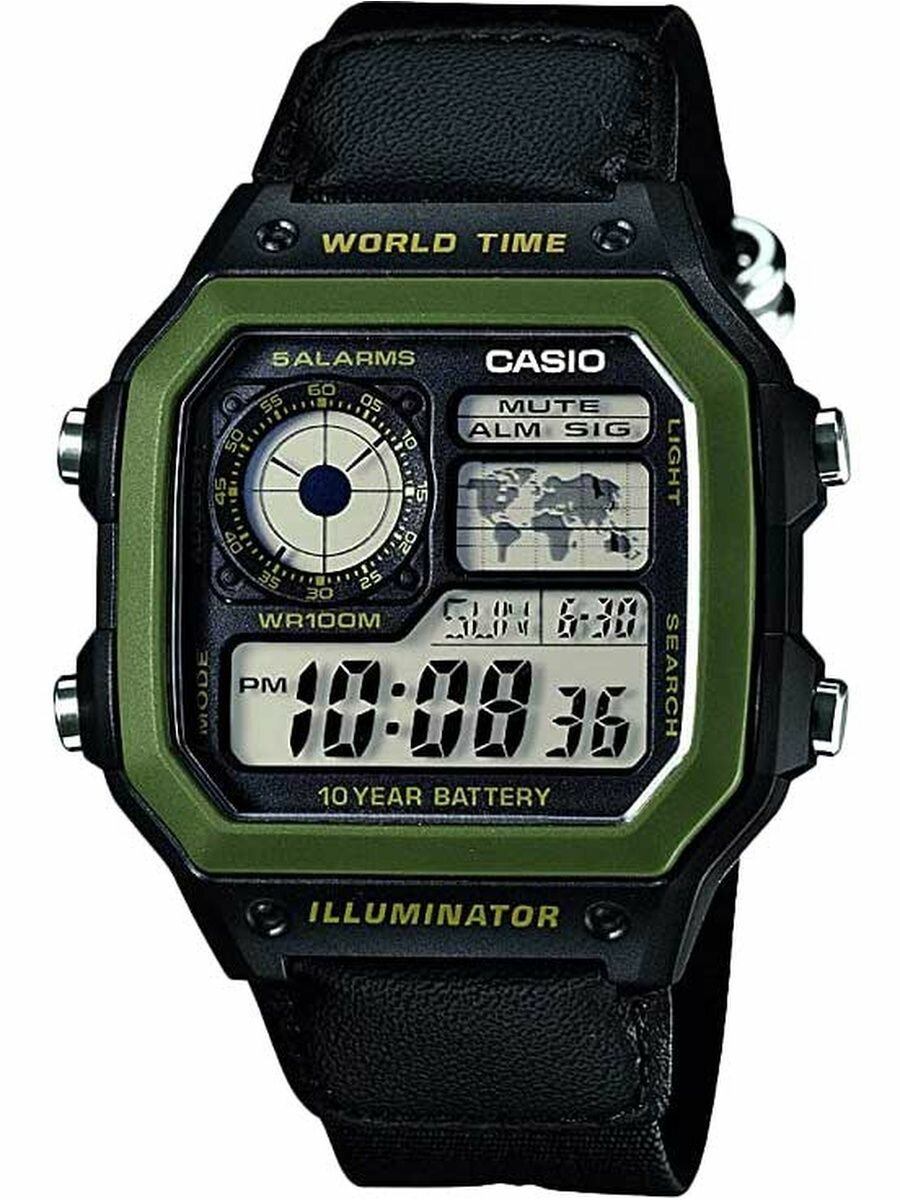 Наручные часы CASIO AE-1200WH-1B, черный, зеленый