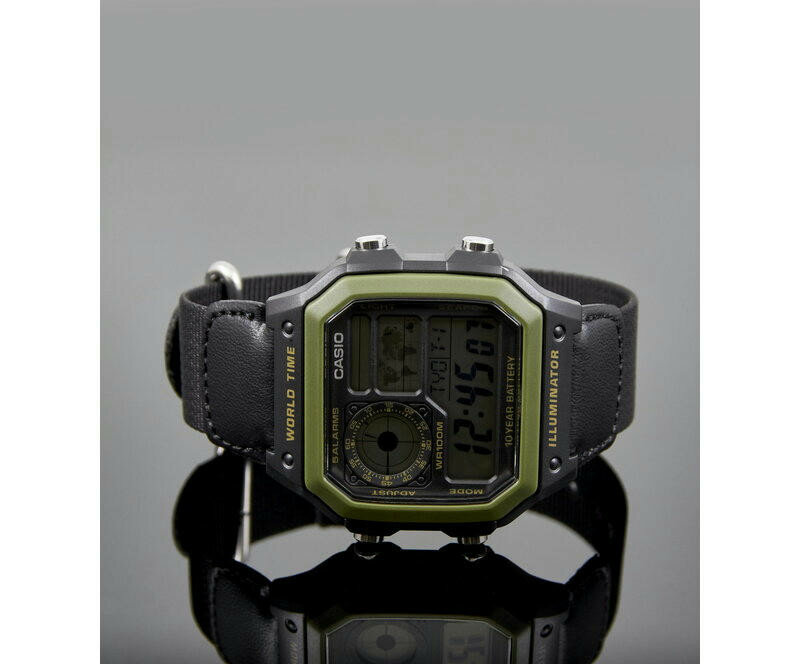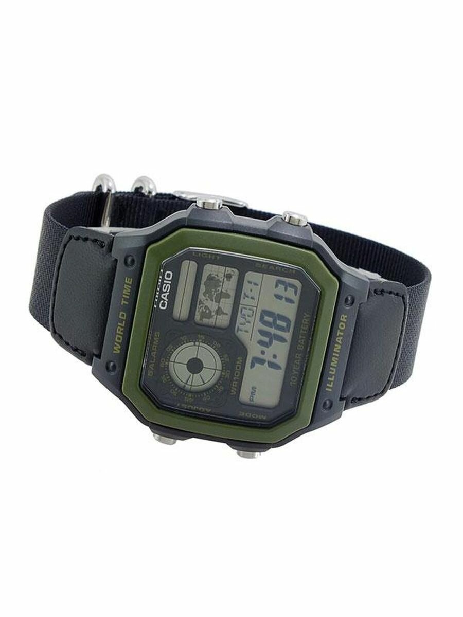Наручные часы CASIO Collection AE-1200WH-1B, черный, зеленый