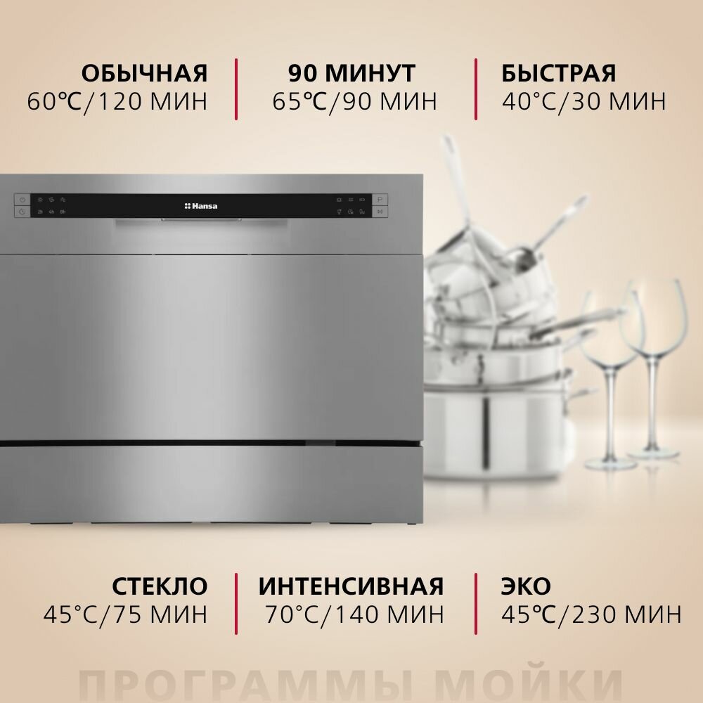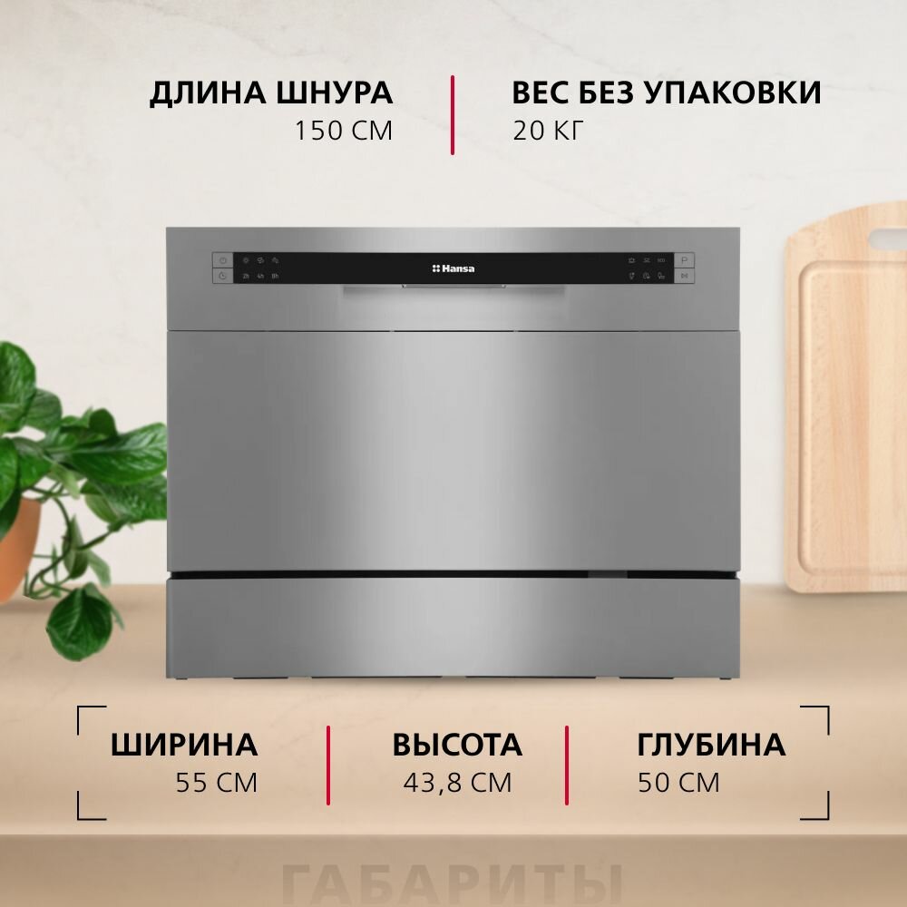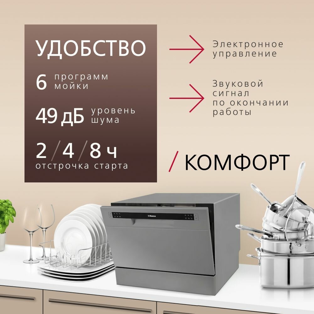 СохранитьНастольная посудомоечная машина Hansa ZWM536SH компактная, 55 см, 6 программ, 1 корзина, электронное управление, с отсрочкой старта интересное: