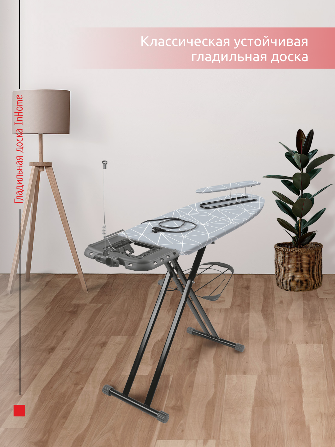 Гладильная доска InHome складная с розеткой и подставкой для утюга/парогенератора INHSK/4, 123х46 см, с серыми цветами