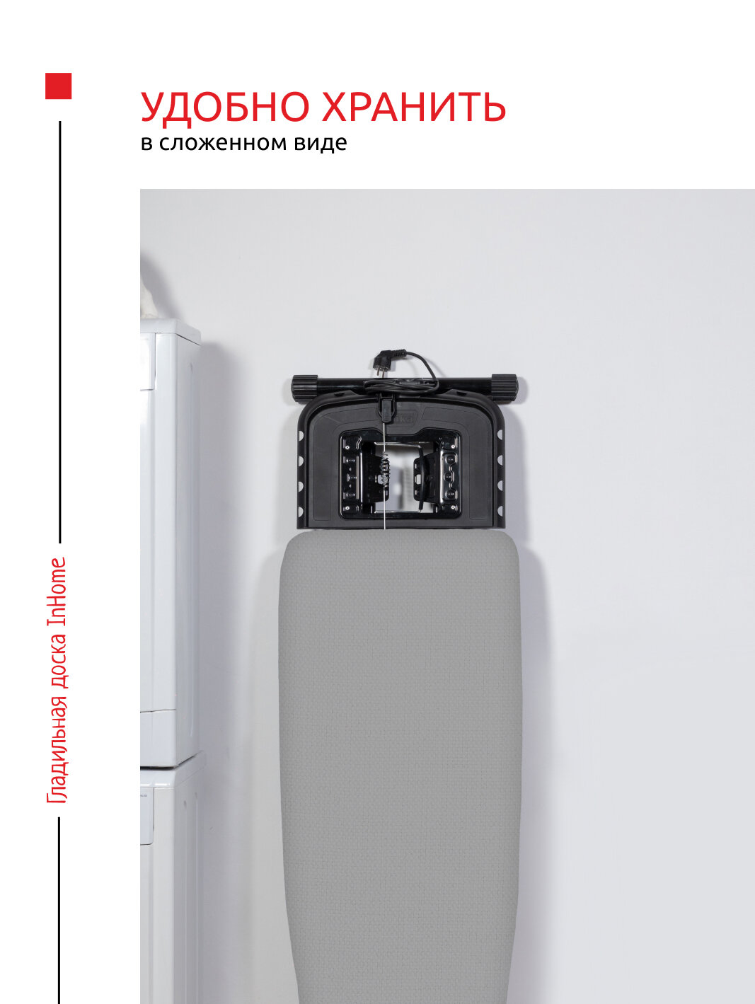 Складная гладильная доска с розеткой и подставкой для утюга/парогенератора (хозяйственные товары) INHSK/3