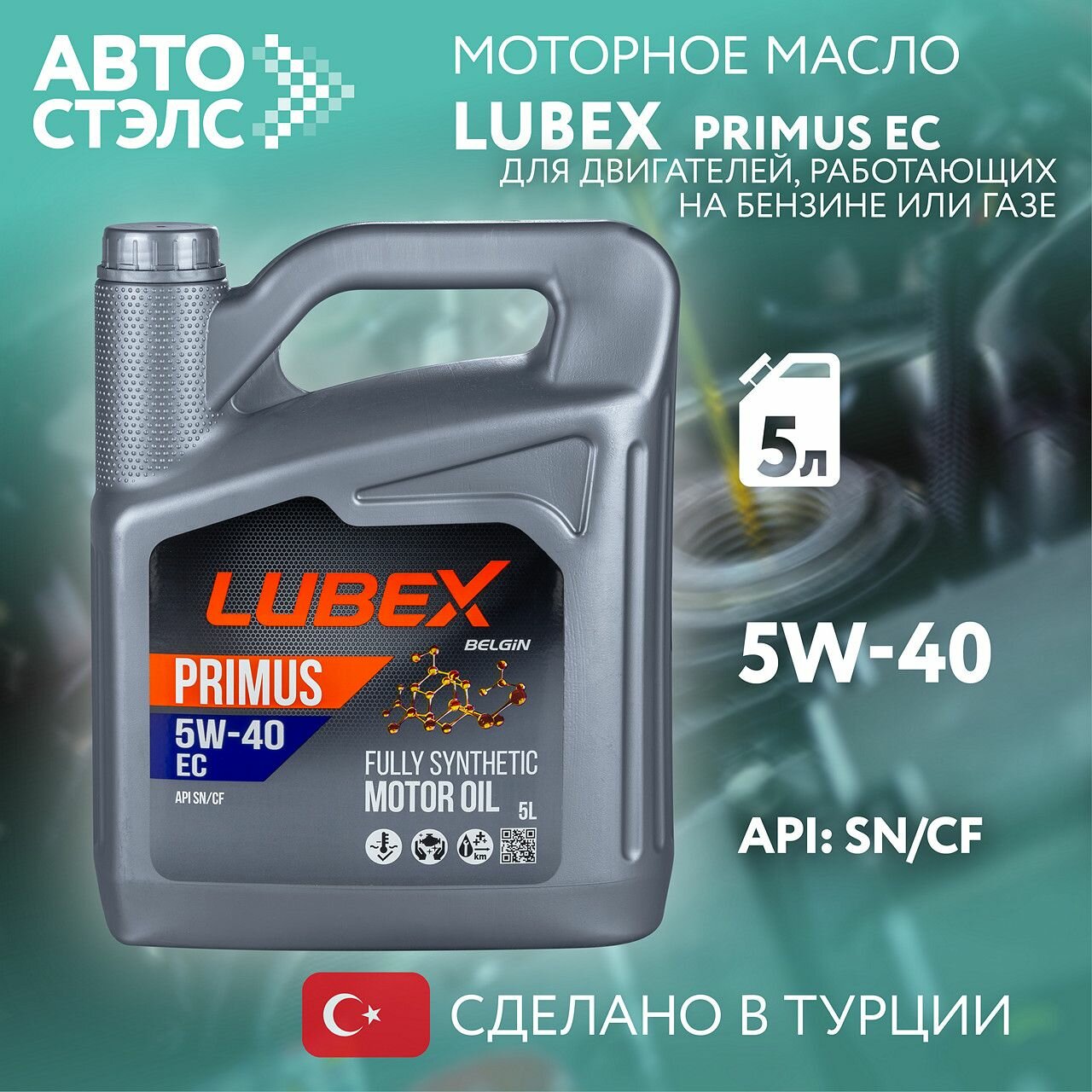 Синтетическое моторное масло LUBEX PRIMUS EC 5W-40, 4 л, 1 шт.