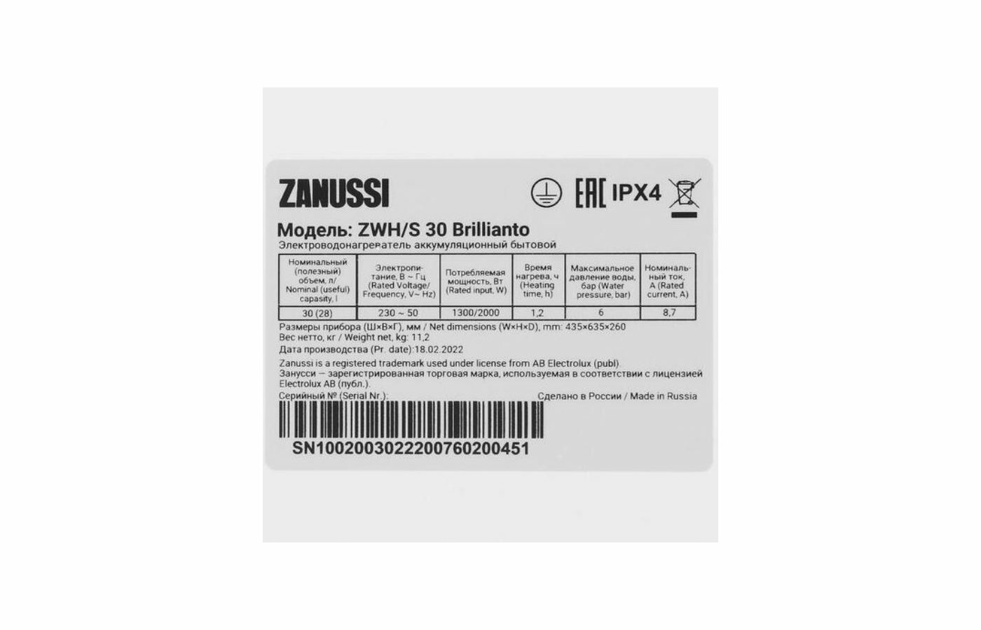 | Производитель | Zanussi |