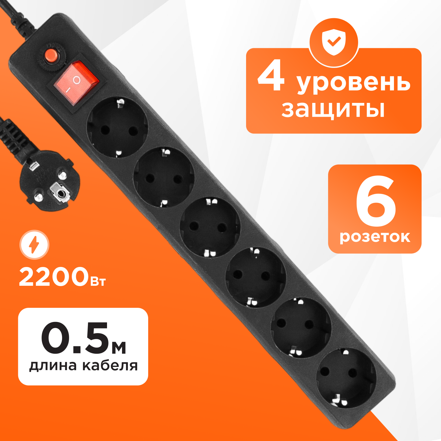 Сетевой фильтр Гарнизон ЕНВ-0, 0,5 м, 6 розеток, черный, для UPS