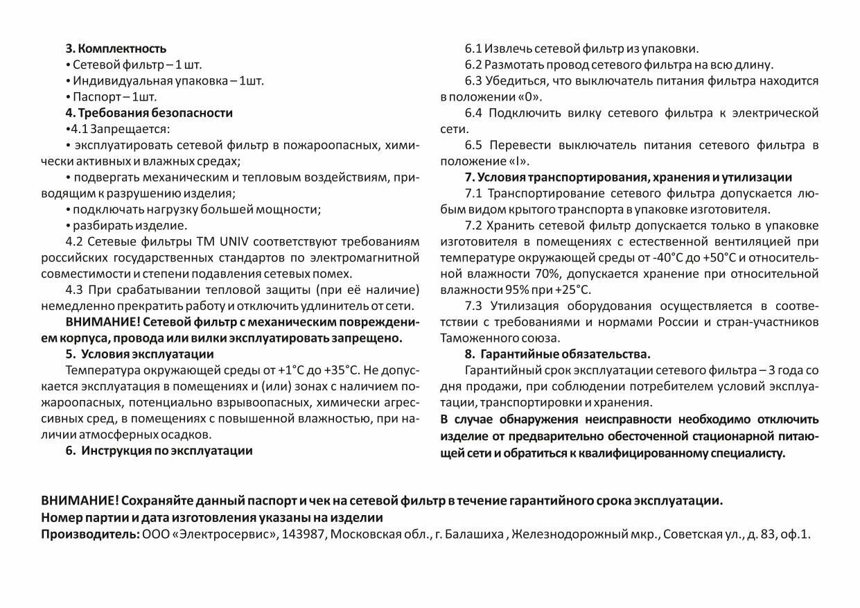 Сетевой фильтр UNIVersal 967U-3001, 6 розеток, с/з, 10А / 2200 Вт белый 1.8 м 345 мм 53 мм 40 мм