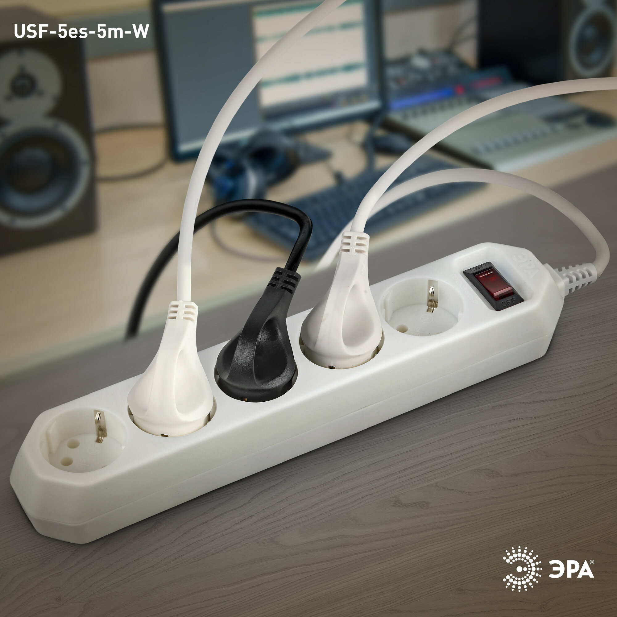 Сетевой фильтр ЭРА USF-5es-5m-W с базовой защитой с заземлением с выключателем 5 розеток 5м 10А белый