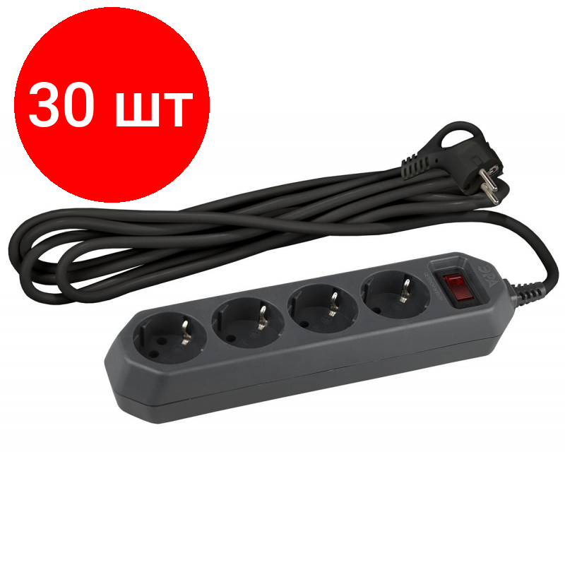 Купить Комплект 30 штук, Сетевой фильтр ЭРА 1.5м 4 розетки, черный (USF-M-4es-1.5m-B)