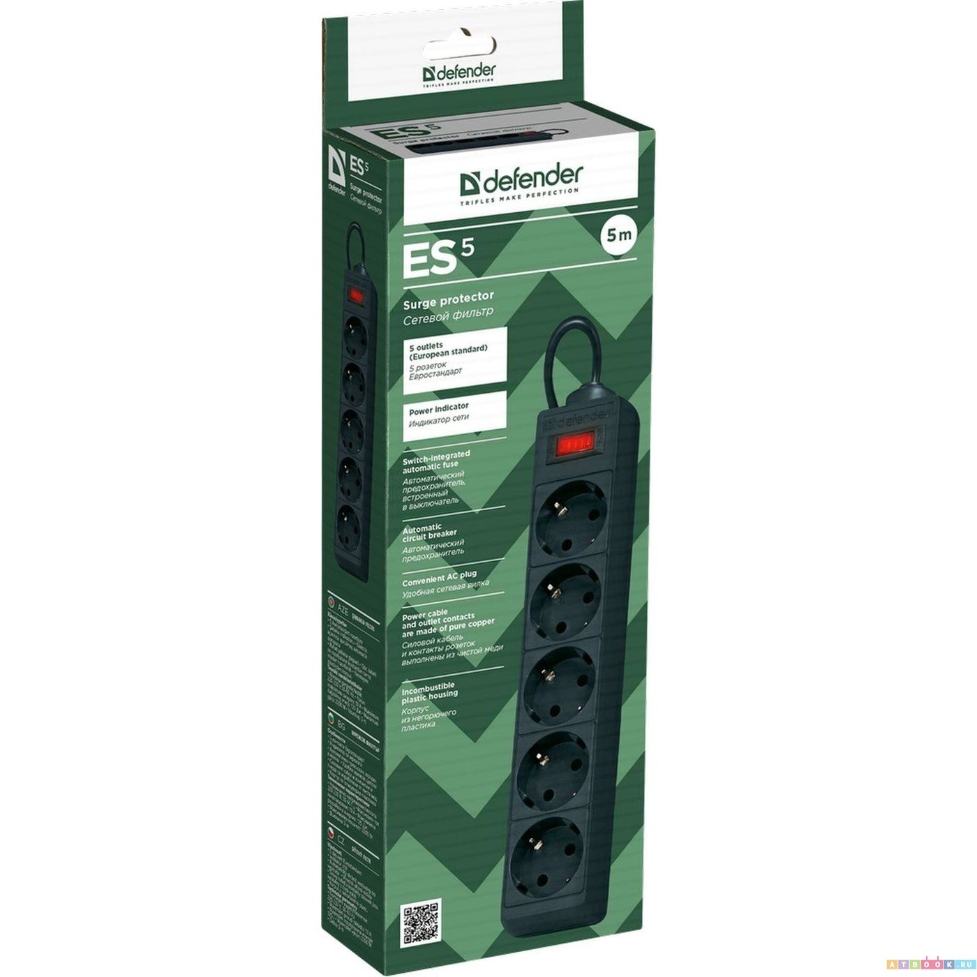Купить Сетевой фильтр Defender ES 5.0 м 5 розеток черный 99486
