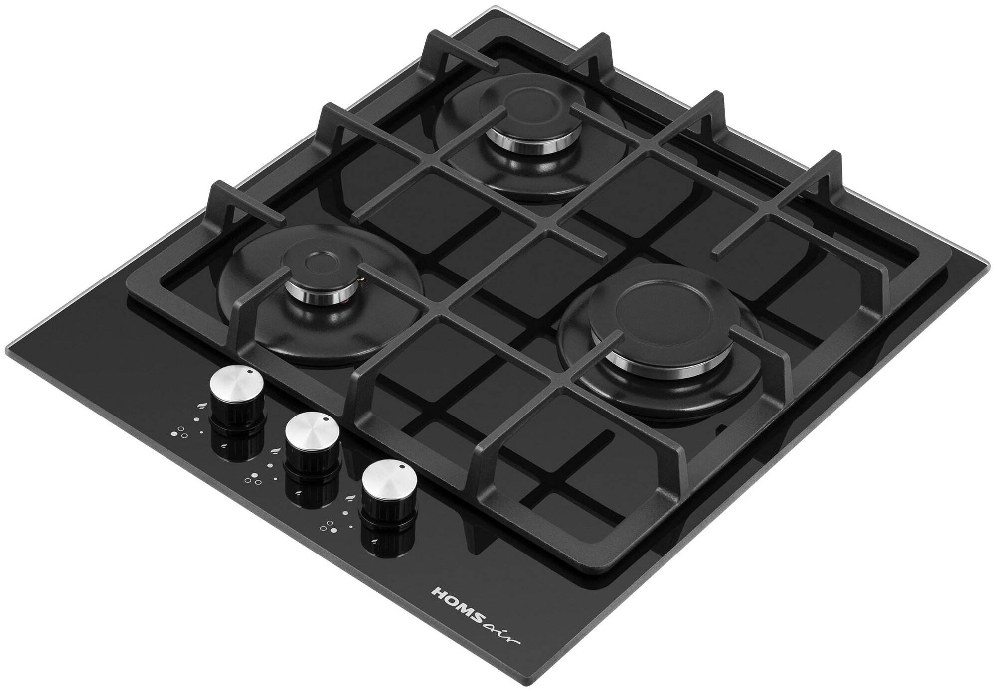 Купить ГазоваяварочнаяповерхностьHOMSairHGG433BK[закал.стекло,конф.-3шт,эл-поджиг.,реш.-чугун,че