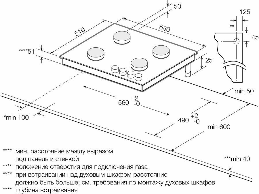 | Глубина для встраивания | 49 см |