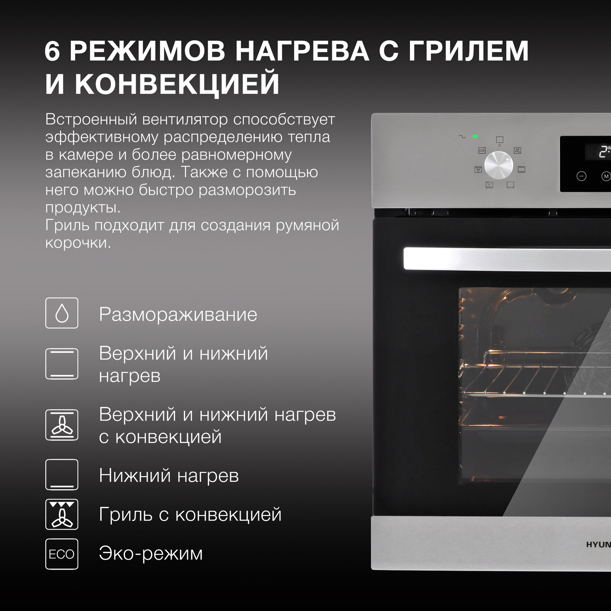 Купить Духовой шкаф Электрический Hyundai HEO 6640 IX серебристый/черный HEO 6640 IX .