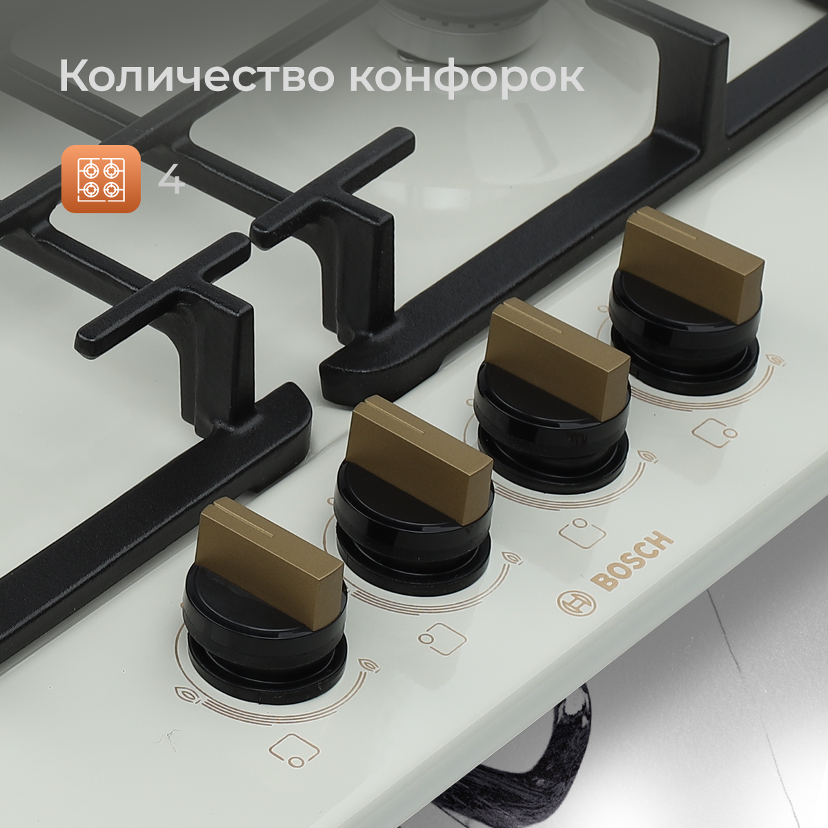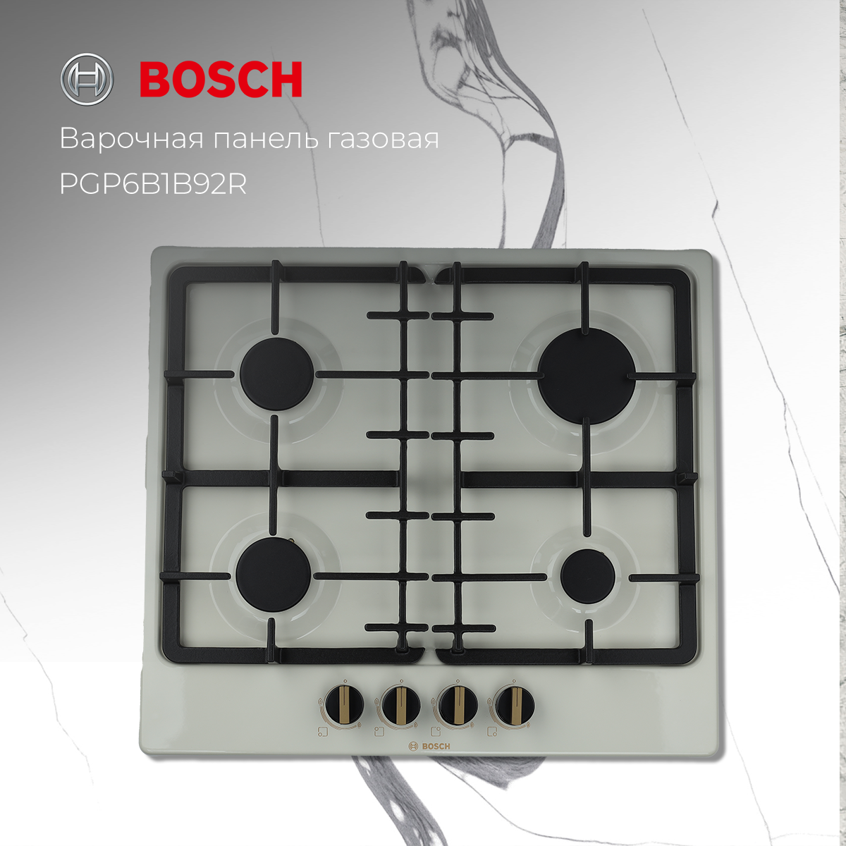 Газовая варочная панель BOSCH PGP6B1B92R, цвет панели бежевый, цвет рамки черный