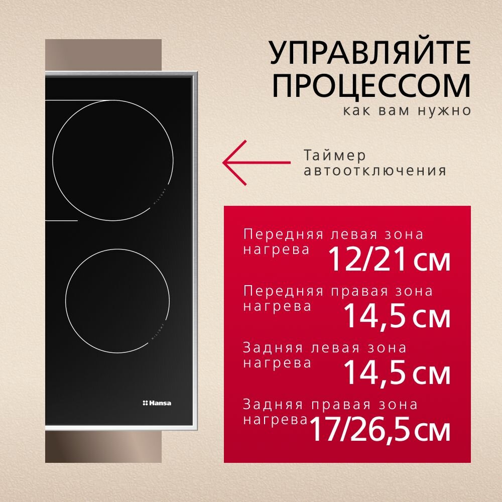 Электрическая варочная панель Hansa BHCI66706, стеклокерамическая поверхность, таймер, автоматика закипания, блокировка от детей, автоотключение, индикация остаточного тепла, черная